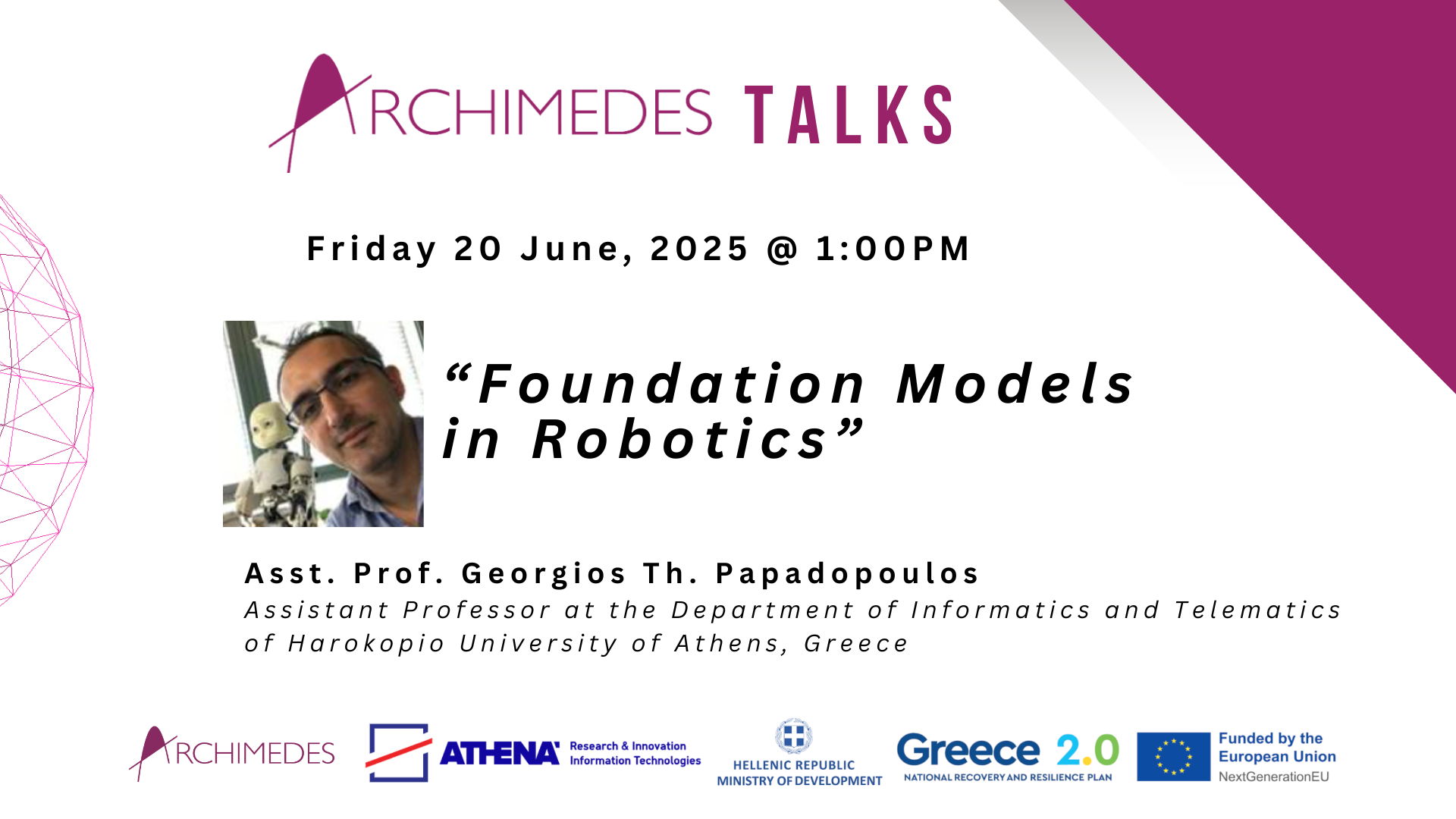 Room: Pythagoras, Archimedes Unit (1 Artemidos str., ART1 building, ground floor)