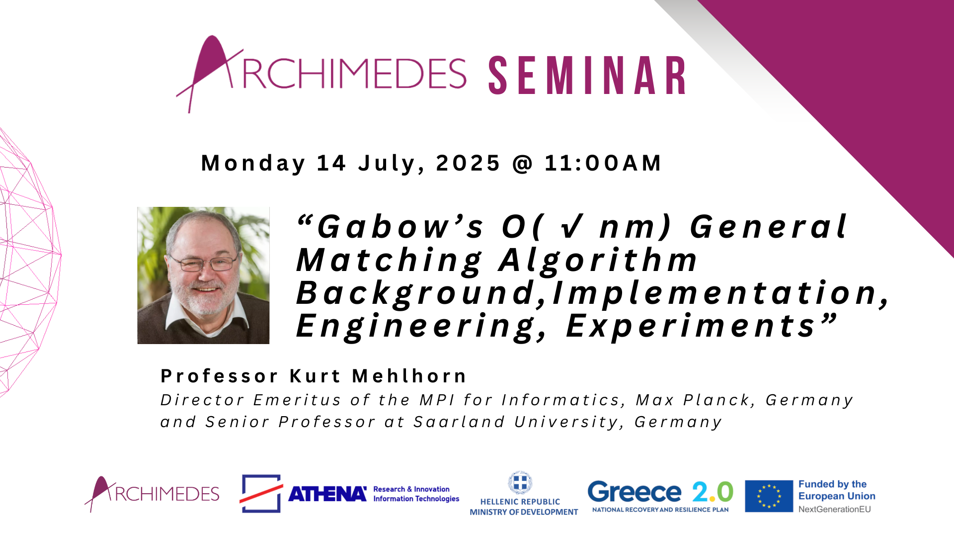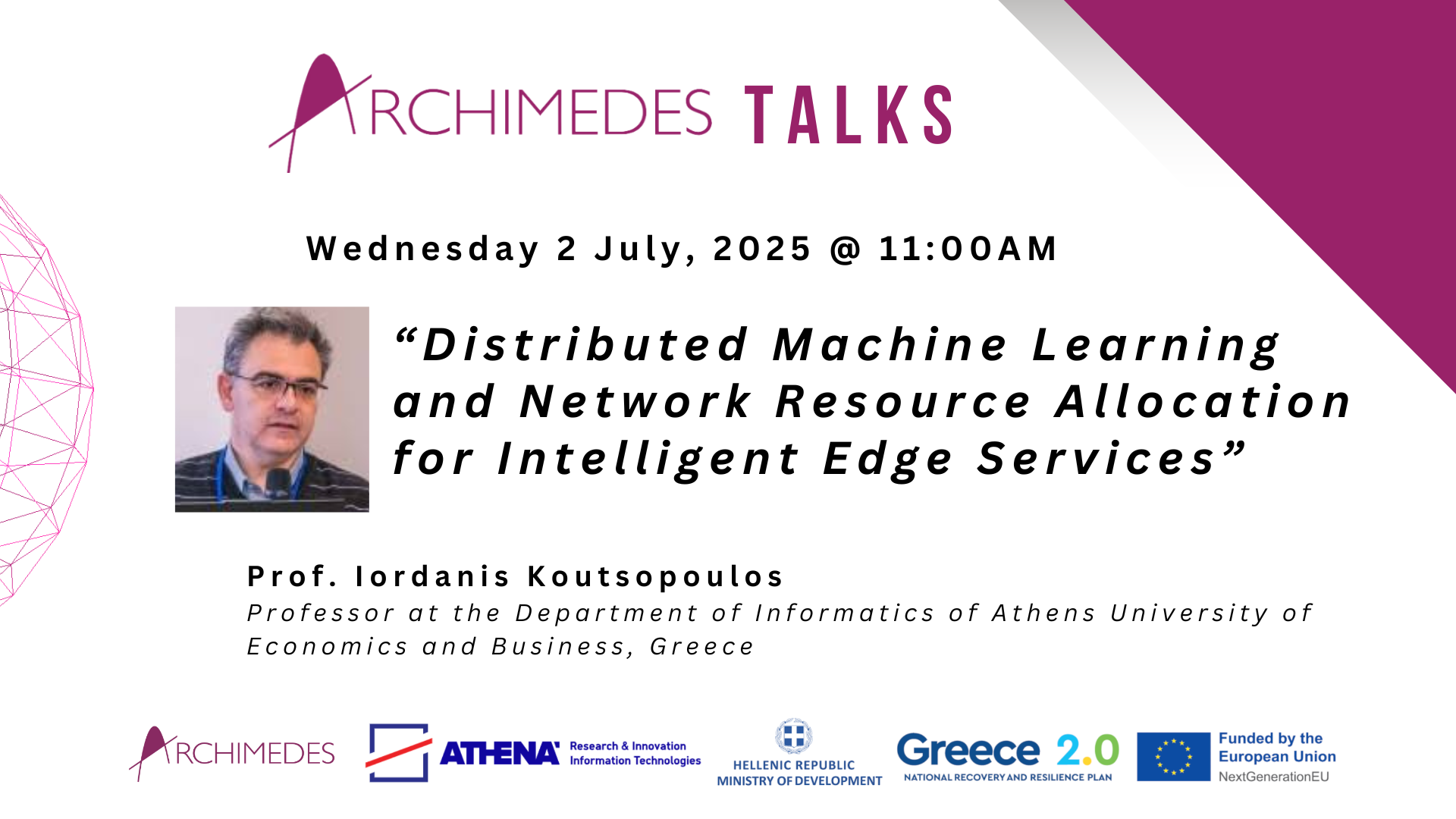 The project “ARCHIMEDES Unit: Research in Artificial Intelligence, Data Science and Algorithms” with code OPS 5154714 is implemented by the National Recovery and Resilience Plan “Greece 2.0” and is funded by the European Union – NextGenerationEU.